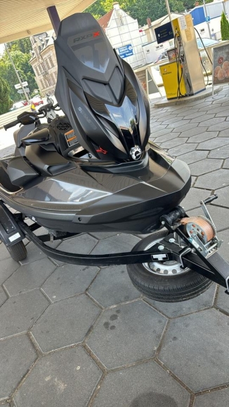 Der Jetski wird ohne Anhänger verkauft. Er steht auf einem Schwarz Matten Anhänger mit neuen LED Leuchten. Kann gegen Aufpreis von 1500€ übernommen werden.