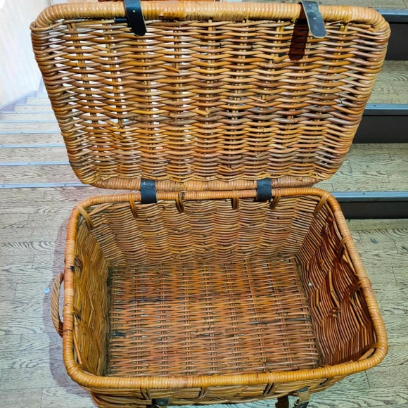 Rattantruhe, verschließbar mit Riemen; Maße: 70 breit, 40 hoch, 50 tief