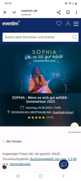 Ich biete 3 Tickets für das Sophia Konzert in Regensburg an, am Samstag den 9.8.25