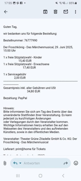 2 Tickets für Froschkönig 29.06.2025 Musical Märchen 15 Uhr Magde