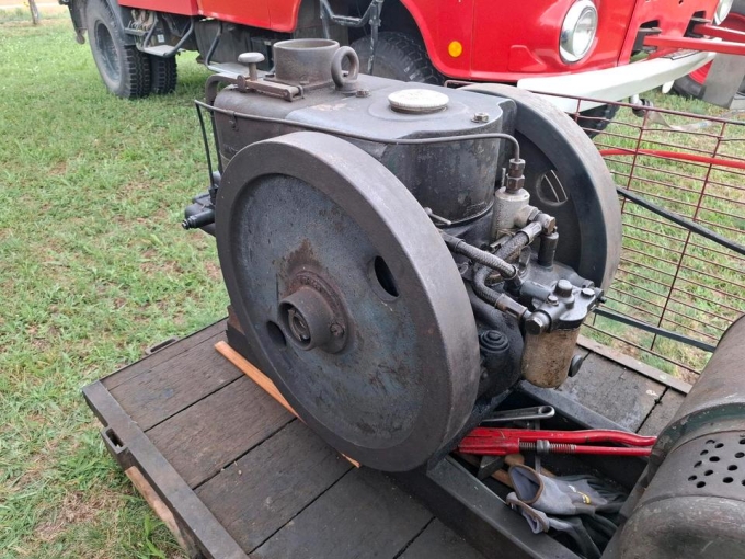 Der Motor wurde 2001 Generalüberholt, auf diesen Transportwagen geschraubt und in Verbindung mit dem Generator als Vorführung zum Treckertreffen genutzt.