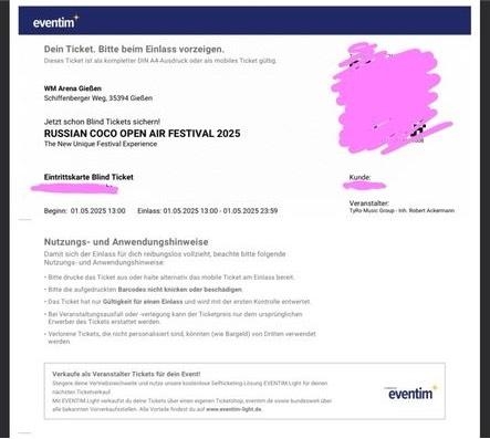 Verkaufe meine Karte schicke ich per email alles zu, schaffe es leider finanziell und zeitlich nicht da hin aber hoffe jemandem damit eine Freude bereiten zu dürfen.