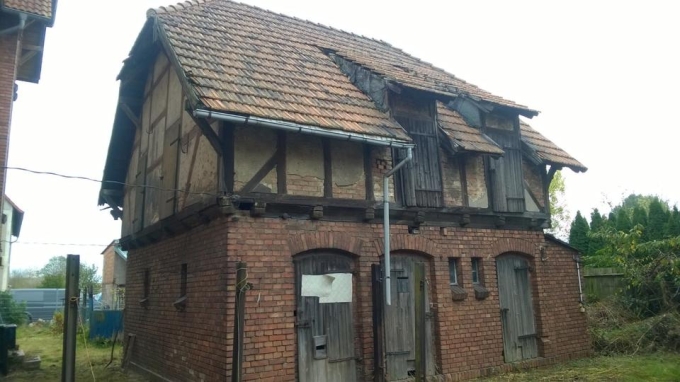 Wir haben ein kleines süßes Fachwerkhaus auf unserem Grundstück.