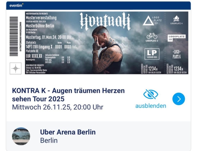 Ich verkaufe 2 Karten für das Kontra K Konzert in Berlin.
