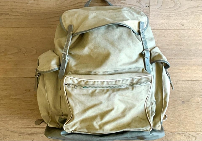 60er Jahre RUCKSACK groß Wanderrucksack Leder Baumwolle Vintage