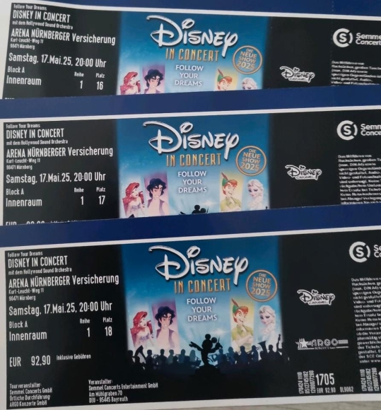 3 TOP KARTEN in der ersten Reihe zu verkaufen. Original Preis! Ein muss für alle Disney Fans!