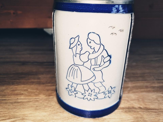 handbemalter Bierkrug mit Zinndeckel