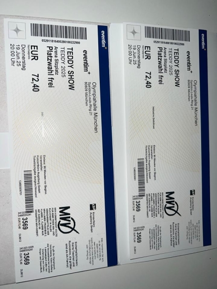 Ich verkaufe meine 2x Karten für die Teddy-Show am 19.06.2025 in München :)