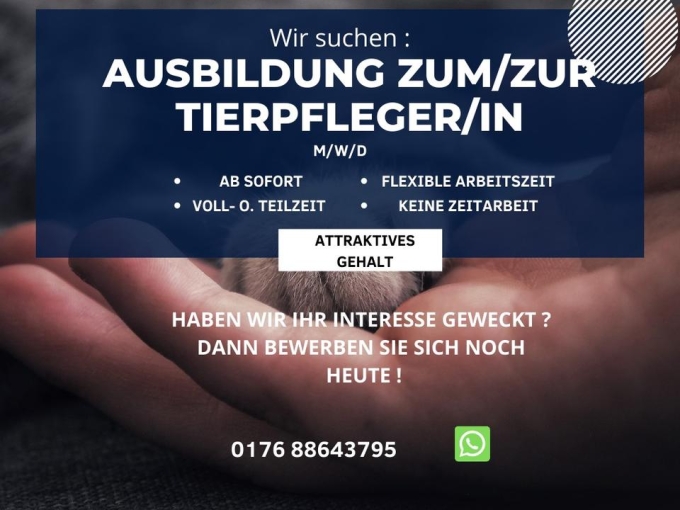 Sind Sie momentan auf der Suche nach einer Ausbildung zum/zur Tierpfleger/in (m/w/d) und haben bereits bei zahlreichen Unternehmen Bewerbungen eingereicht, jedoch leider keine Rückmeldung erhalten? Dann sind Sie bei uns genau an der richtigen Adresse!