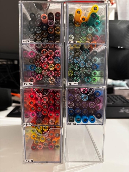 Ich habe für die Stifte Farbkarten erstellt und 1 Bild gemalt, dabei habe ich festgestellt, dass sie leider nichts für mich sind.