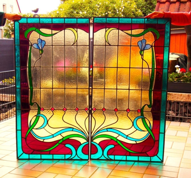 Bleiverglasung,Jugendstil,2 Teile,Glasbild,Fenster,Bleiglas,Bild