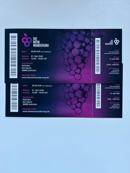 2Tickets für Die Weinwanderung in Gehrden am 31.05.2025 abzugeben.