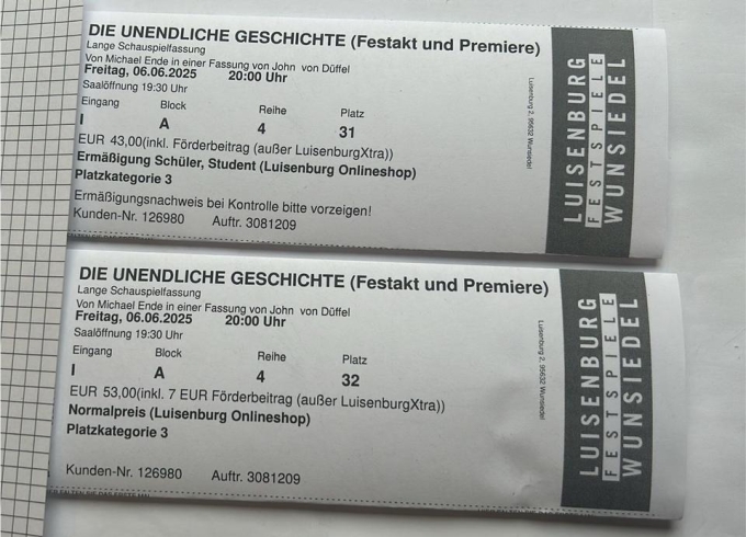Meine Mum und ich können spontan nicht zur Show gehen nächste Woche. Ich fände es sehr schade wenn die Prämierentickets verfallen.