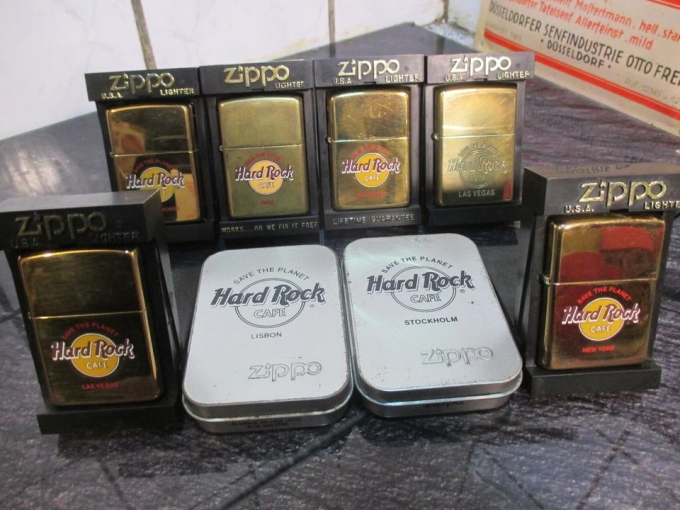 8 Zippos Hard Rock Cafe guter zustand teils mit altersentsprechenden lagerspuren 7 Neu 1 Gebraucht rest siehe Bilder Paris 05.1997 Gebraucht - Stockholm 12.2000 Neu OVP- Lisbon 03.2003 Neu OVP- Las Vegas Cafe 05.1996 Neu-Las Vegas Hotel 03.1996 Neu -Hollywood 03.1996 Neu -New York 02.1997 Neu -San Franzisko 08.1995 Neu -VB 320 Euro Abholung Düsseldorf o. Versand