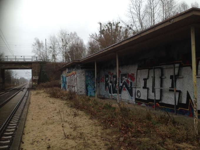 Der ehemalige Turmbahnhof liegt zwischen den Haltestellen Bergholz Rehbrücke und Saarmund an der aktiven Fahrstrecke.
