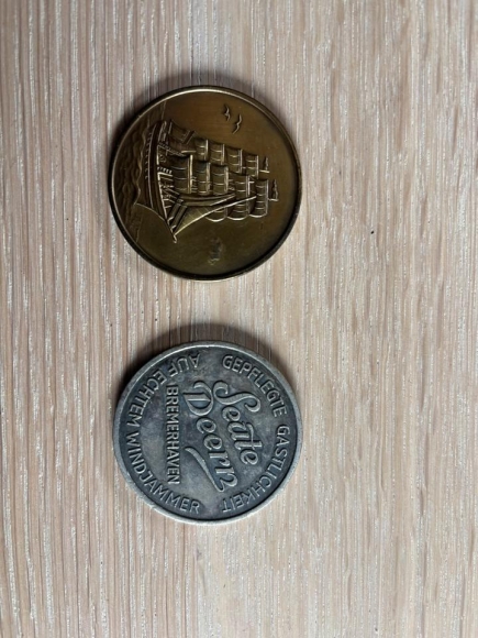 Biete zwei Münzen von von der Seute Deern Bremerhaven konnte man damals im Restaurant auf dem Schiff mit bezahlen 50 DM mit der Goldenen und 25 DM mit der Silbernen.