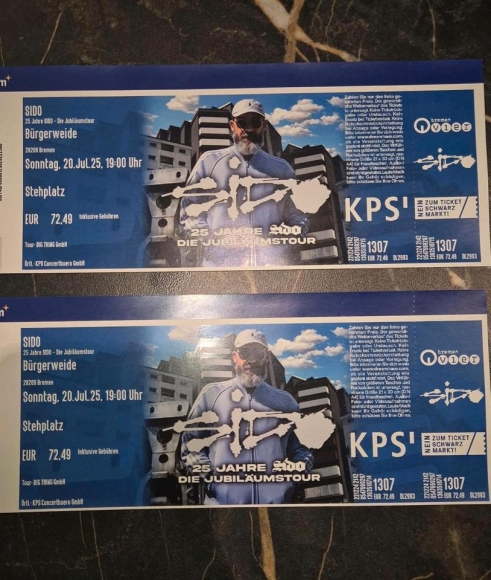 Verkaufe 2 Tickets für die Jubiläumstour von SIDO.