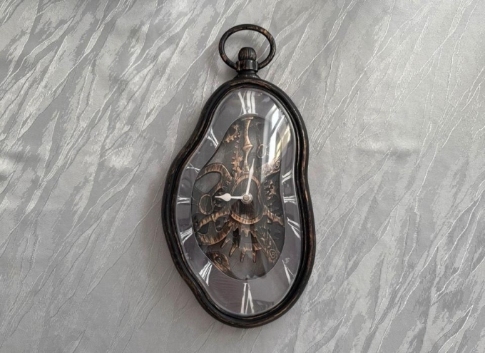 Ich verkaufe diese einzigartige und seltene Wanduhr von Kare Design, inspiriert von Salvador Dalís Kunstwerk Die Beständigkeit der Erinnerung. Diese schmelzende Uhr ist ein echter Hingucker für Kunstliebhaber und Fans außergewöhnlicher Designs.
