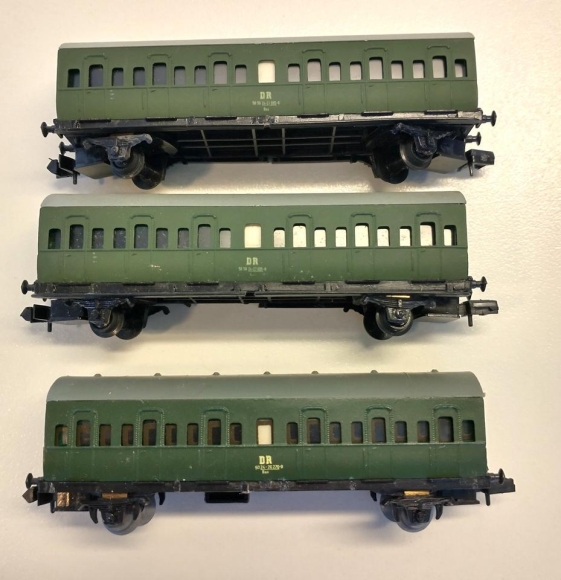 Verkauft werden 3 Stück Spur N PIKO Personenwagen Abteilwagen in guten Zustand ohne Abbrüche.