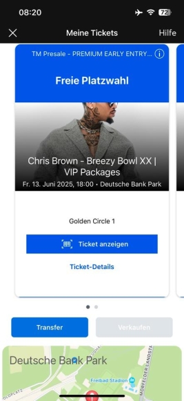 Verkaufe 2x Tickets Chris Brown VIP Premium Early Entry Package Golden Circle für das Konzert in Frankfurt .