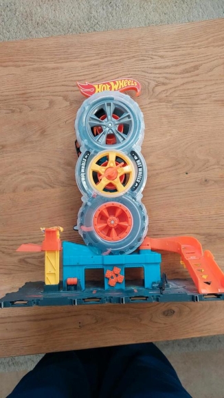 gern genutzter Hot Wheels super Reifenshop zum drehen und spielen.