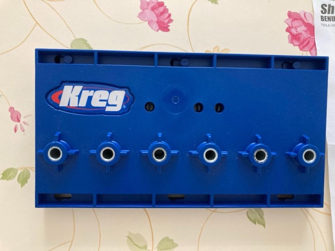 Die blaue Schablone sieht noch neuwertig aus. Dabei sind Anleitung, Bohrer und Stift. Schön praktisch integriert, was ich immer toll fand. Das Ding hat faktisch nur geschützt im Schrank gelegen. Faktisch hat das Teil keine Gebrauchsspuren. Es ist von 2021/22.