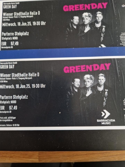Ich verkaufe leider meine Konzertkarten für Green Day am 18.06.25 in der Wiener Stadthalle.