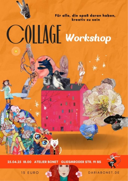 Am 25.04.25 veranstalte ich einen Collagen-Workshop in meinem Atelier in der Gliesmaroderstrasse 91, 38106 BS.