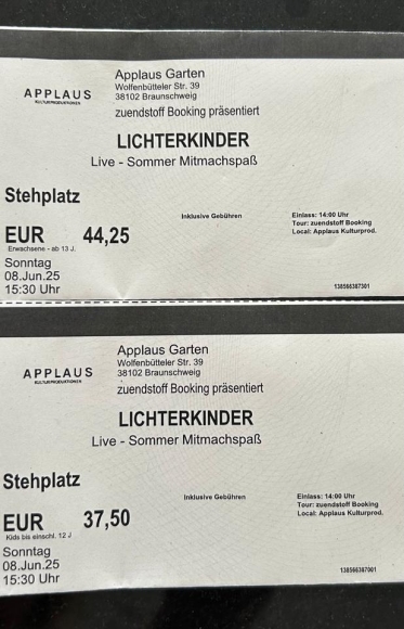 Wer hat morgen spontan Zeit zur Veranstaltung Lichterkinder in Braunschweig / Applausgarten zu gehen? Wir können leider krankheitsbedingt nicht hingehen.