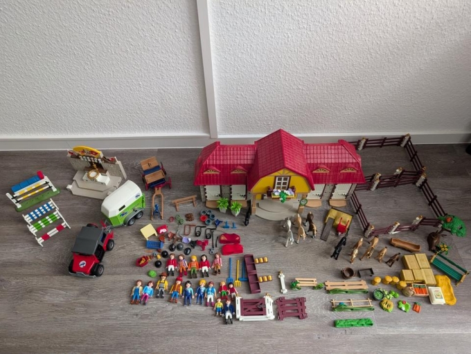 Aus diesem Grunde bieten wir hier den abgebildeten Playmobil Bauernhof / Reiterhof / Pferdehof mit Zubehör an.