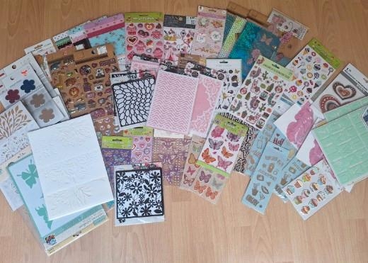 Karton Neu Bastelmaterial Sticker aller Art Spiegel Schablonen et
