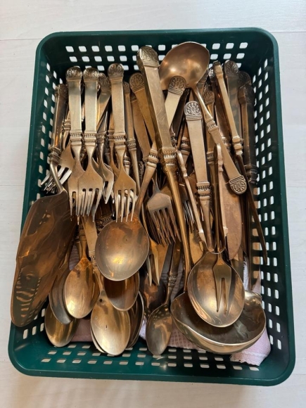 Verkaufe ein Konvolut an Messing Besteck Alter weiß ich nicht habe keine Verwendung mehr ist sehr schwer 40€ dann ist es weg