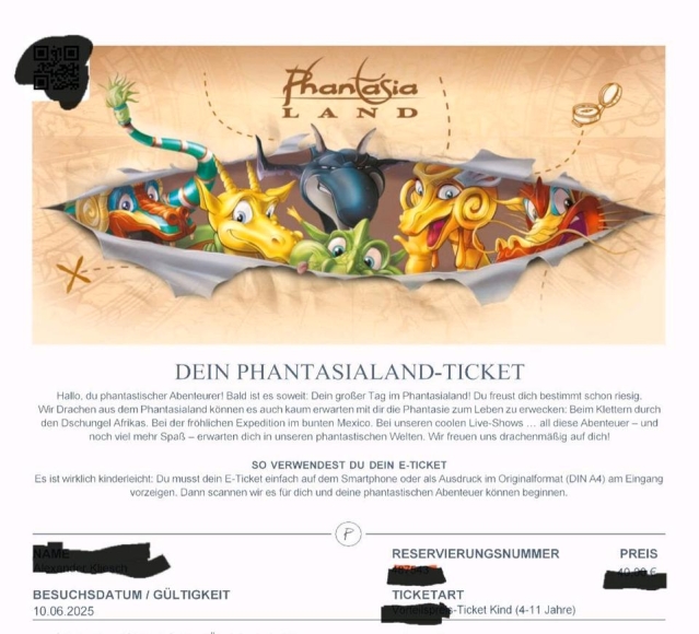 Verkaufe das Kinderticket (4-11) per Paypal und Screenshot für heute 10.06.25.