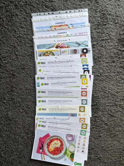 Rezeptkarten Hello Fresh, Marley Spoon, Dinnerly