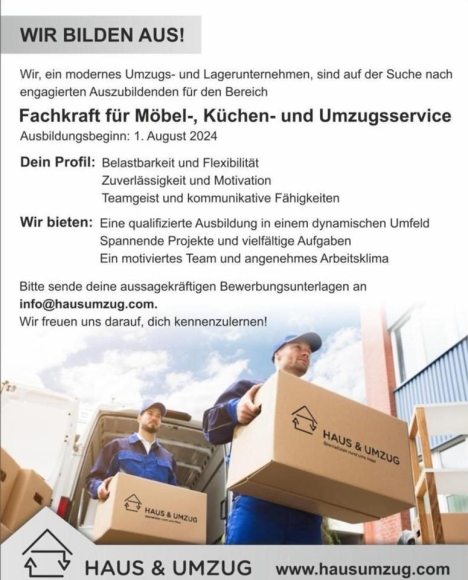 ✅ Eine abwechslungsreiche Ausbildung mit spannenden Aufgaben rund um Küchen-, Möbelmontagen und Umzugsdienstleistungen.