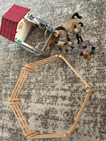 Sehr guter Zustand ohne Originalverpackung ,es Fehlt ein Zaunelement (kann man aber trotzdem aufbauen und zusammen stecken und eine kleine Trinkschale nicht mehr auffindbar.