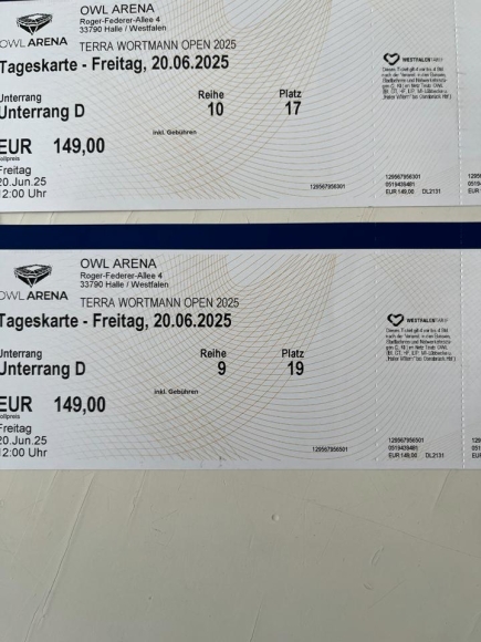 2 Karten Terra Wortmann Cup / Freitag 20.06.2025