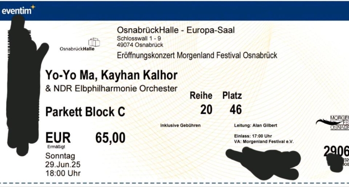 2 Tickets Yo-Yo Ma Morgenland Festival 29 Juni