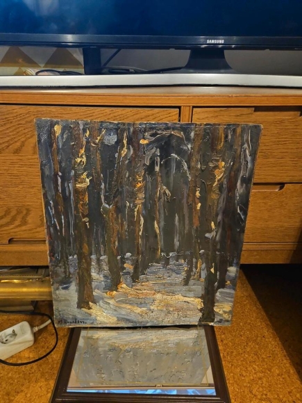 Winterliches Waldbild Waldlandschaft Ölbild von Metardus Kruchen.
