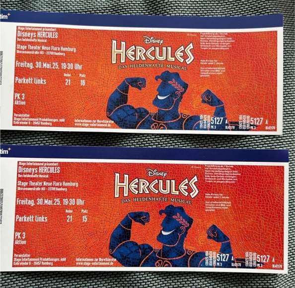 30. Mai Hercules Musical Hamburg Tickets (2x)