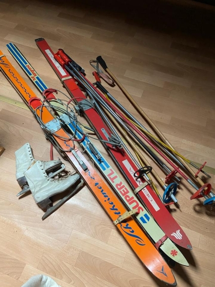 Verkaufe diese alten Wintersportgeräte.