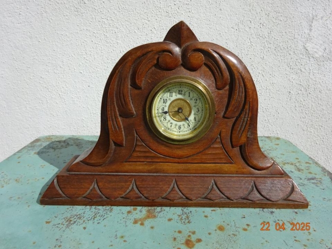 Kleine alte Tischuhr. Schreibtisch-/ Kaminuhr Holz aus Frankreich, mechanisches Uhrwerk, verziertes Emaille- Ziffernblatt funktioniert tadellos!