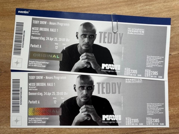 Biete zwei Karten für die Teddy Show in Dresden am 24.04.2025 in der Messe, Pakett A super Plätze.