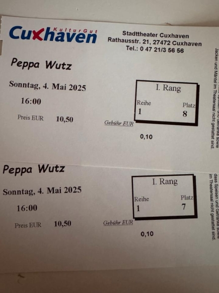 2 Karten Peppa Wutz 1. Reihe 04.05.25 um 16 Uhr