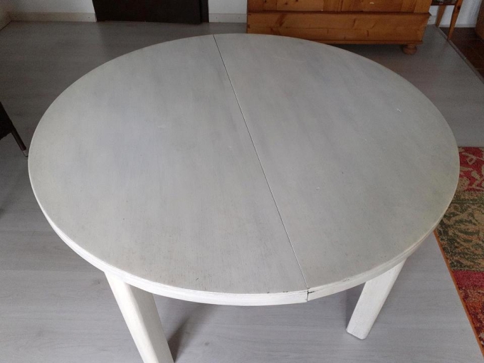 Der Tisch ist 2-fach ausziehbar. Durchmesser 110cm ,ganz ausgezogen 177cm. Super für kleine und große Anlässe. Nur Abholung