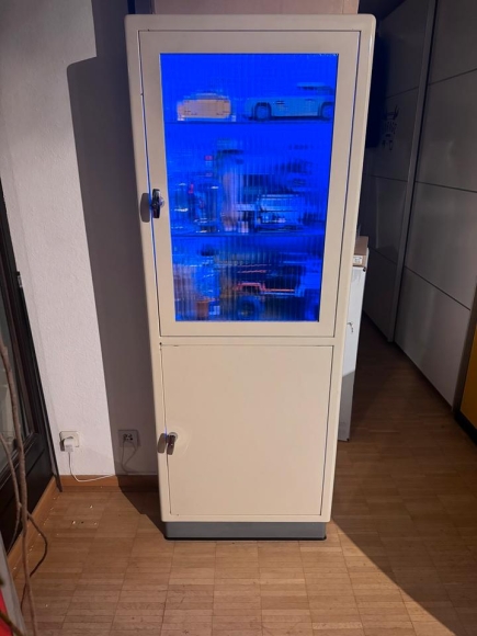 Die indirekte Beleuchtung im Schrank wurde nachträglich nachgerüstet und bietet viele verschiedene Farbtöne an.