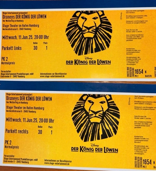 Krankheitsbedingt können wir leider nicht zum Musical fahren. Wer ist spontan oder zufällig am 11.06.25 in Hamburg? Top Plätze genau in der Mitte. Originalpreis