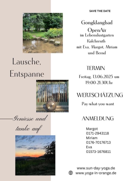 Du wirst an den drei Terminen verwöhnt mit Klängen und kannst dabei entspannen.