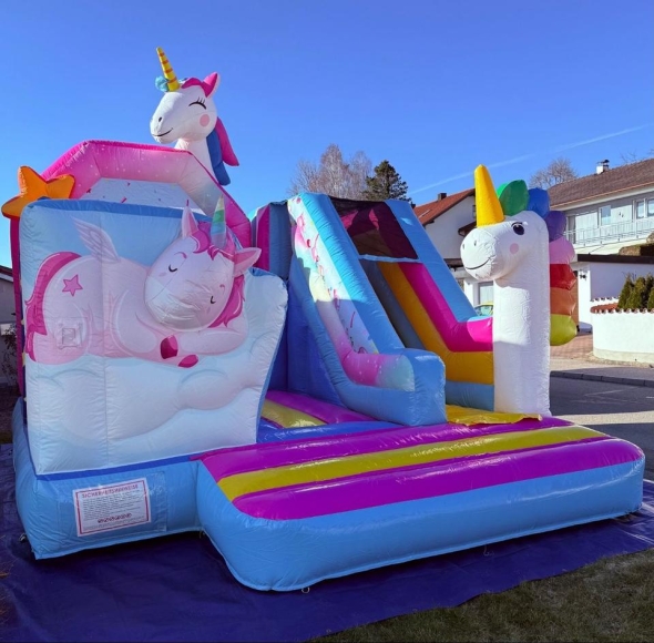 Neu! Einhorn Hüpfburg mit Rutsche Mieten Geburtstag Hochzeit Fest