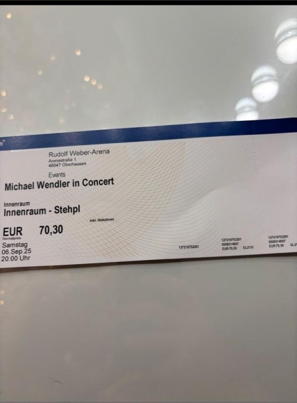 Verkaufe 1 Stehplatzkarte für das Michael-Wendler-Konzert am 06.09.2025.